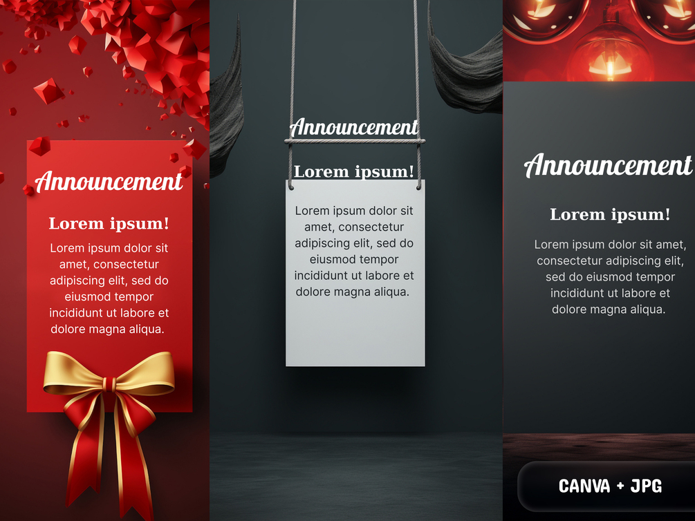 Whether you're planning a special event, launching a new product, or making an important business announcement, our design bundle has you covered. With a range of elegant and professional templates, you'll have everything you need to create captivating and eye-catching announcements that leave a lasting impression.