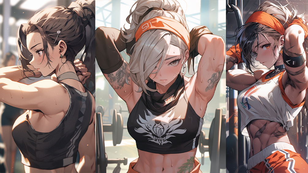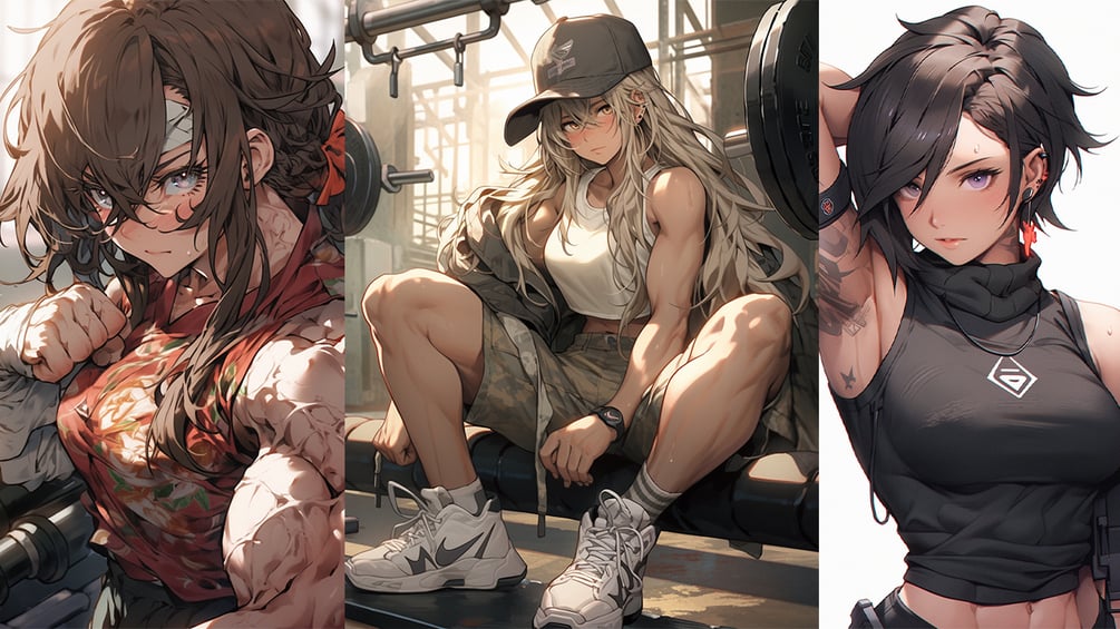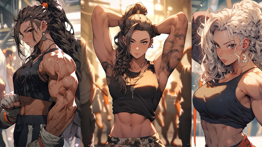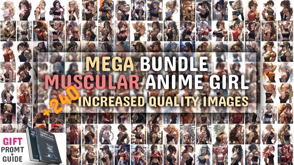 +240 Muscular Anime Girl Images Bundle, + PROMT, Mega Set, Anime Style Body Builder Girl, High Quality AI Images